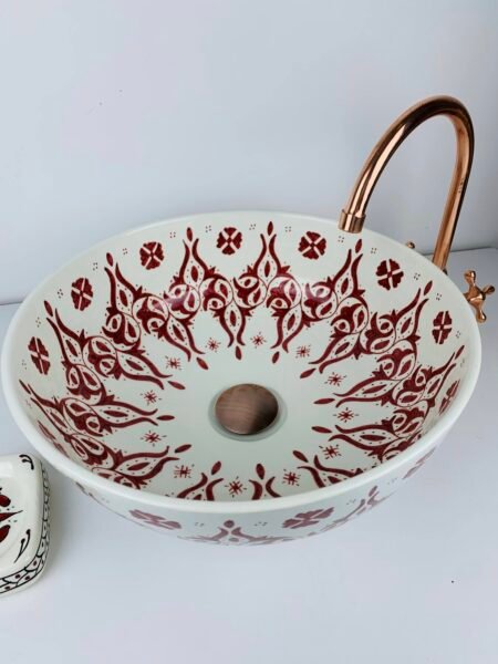 €75.00 – €215.00Price range: €75.00 through €215.00Bring a touch of Berber elegance to your bathroom with this ceramic sink, entirely shaped and hand-painted in our Fez workshops. This unique model stands out with its garnet red patterns, both geometric and organic, that recall dancing flames and traditional Maghreb ornaments. An exceptional piece, blending ancestral art and […]